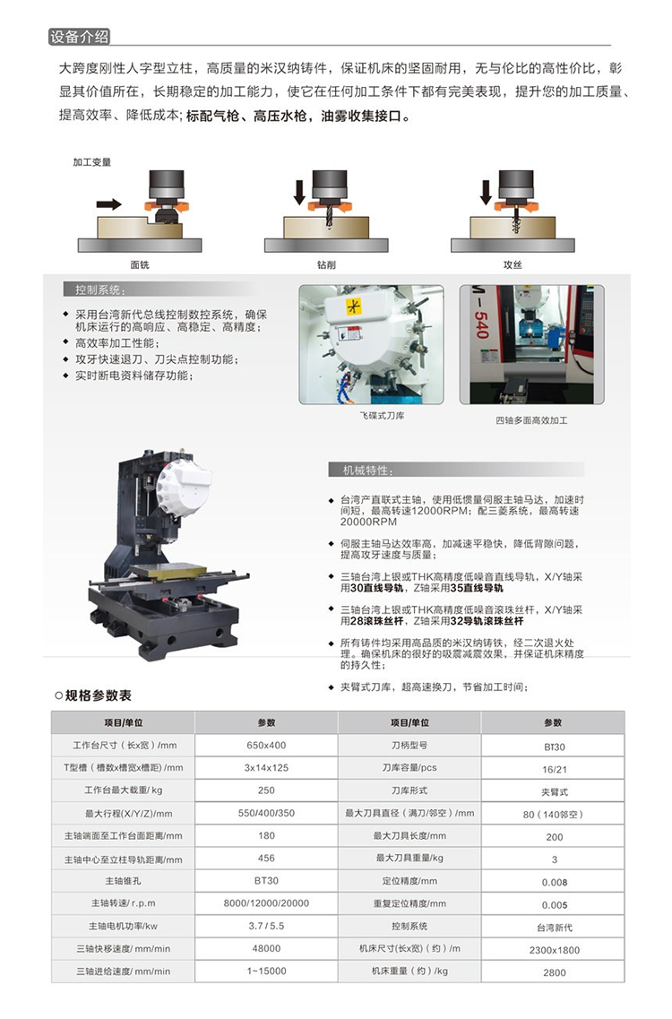 台湾绮发 高效率钻铣加工中心 VF-700