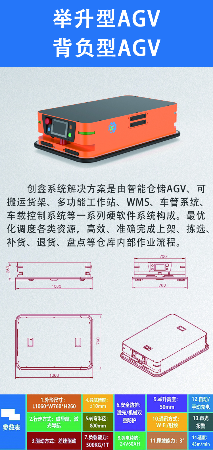 创鑫 创鑫背负型AGV CS-BF500