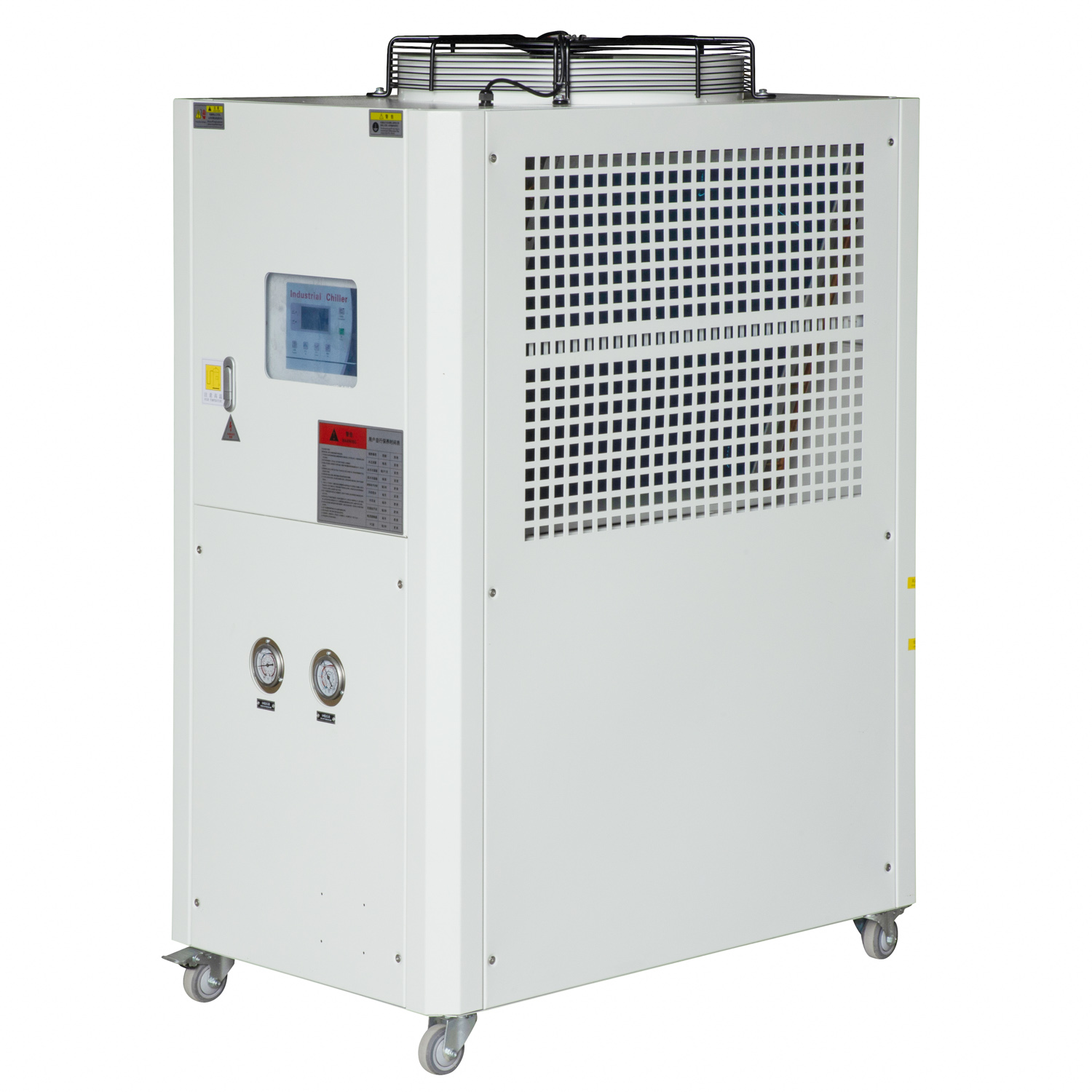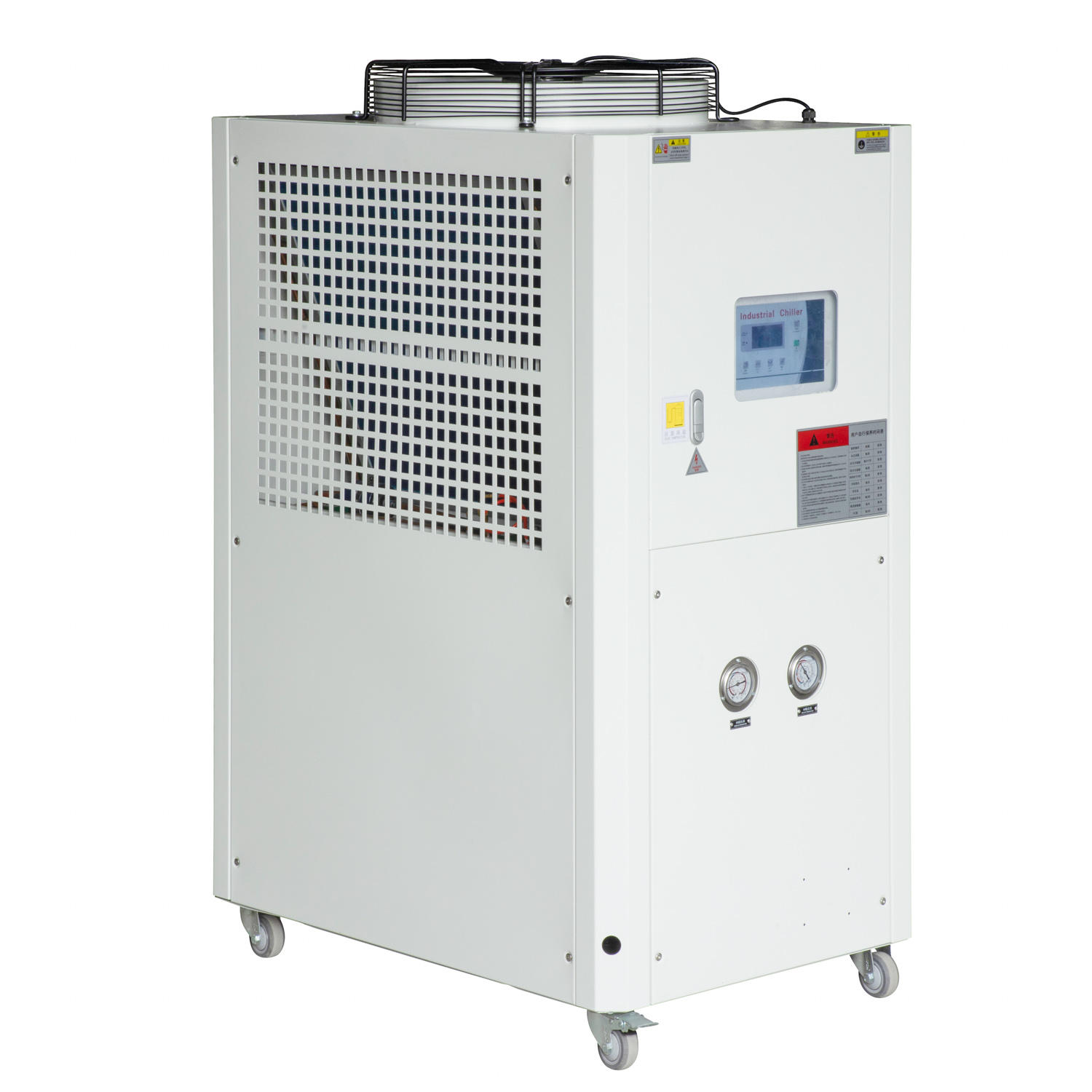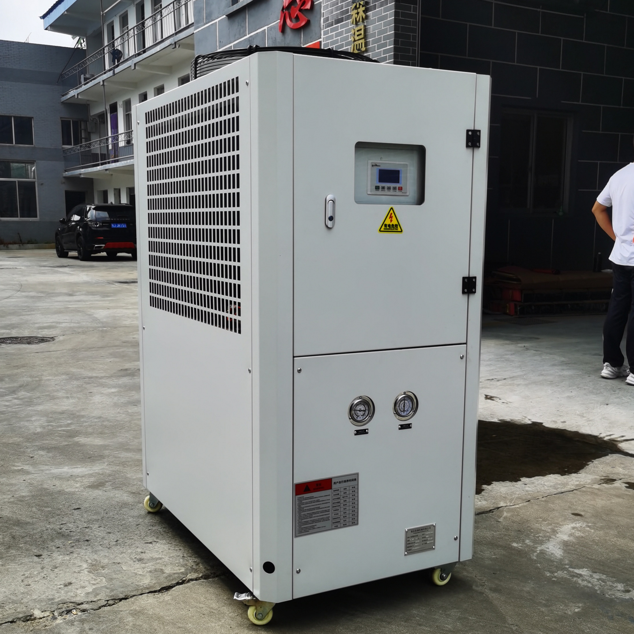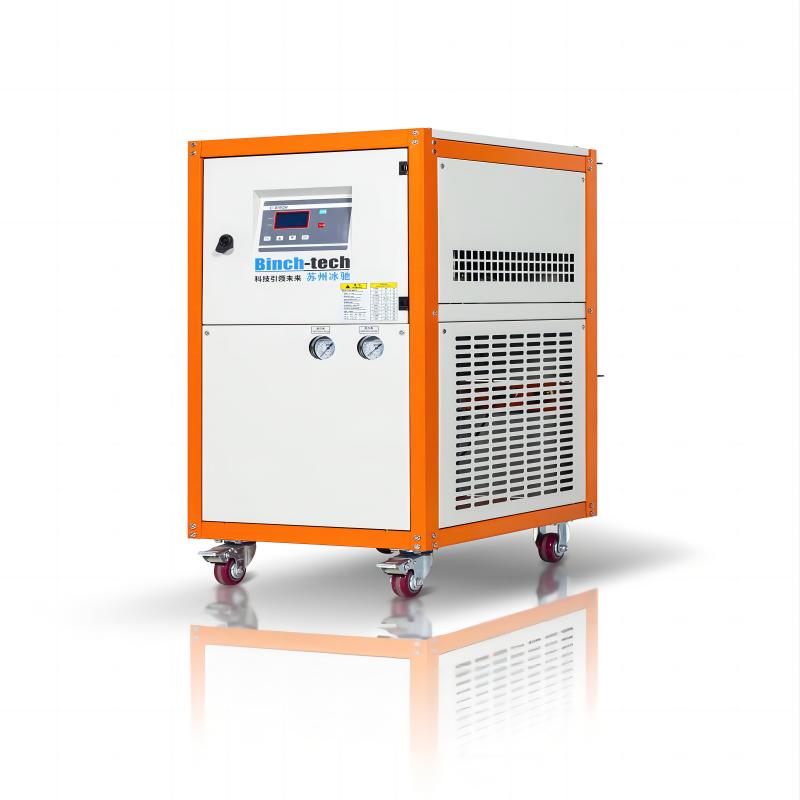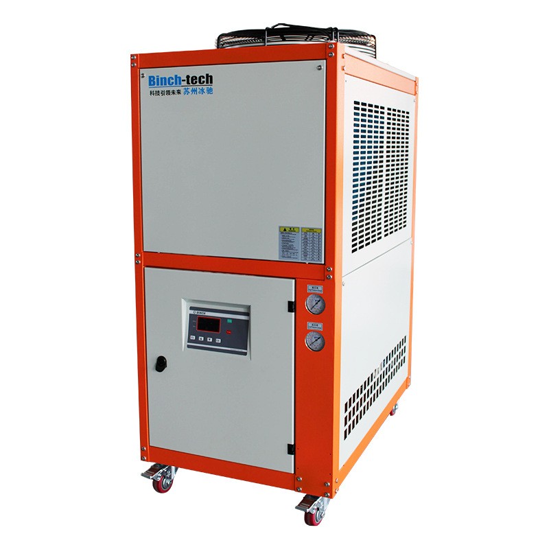 风冷式冷水机是将常温的水通过冷水机的压缩机制冷到一定的温度以强化冷却模具或机器。作为单机使用,散热装置为内置的风扇,主要有三个相互联系的系统:制冷剂循环系统、水循环系统、电器自控系统。