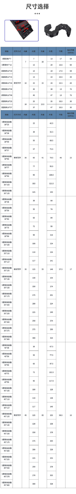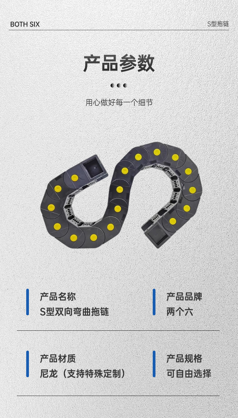 俩個陆 拖链 机床桥式尼龙塑料耐磨双向弯曲S型双向拖链坦克链