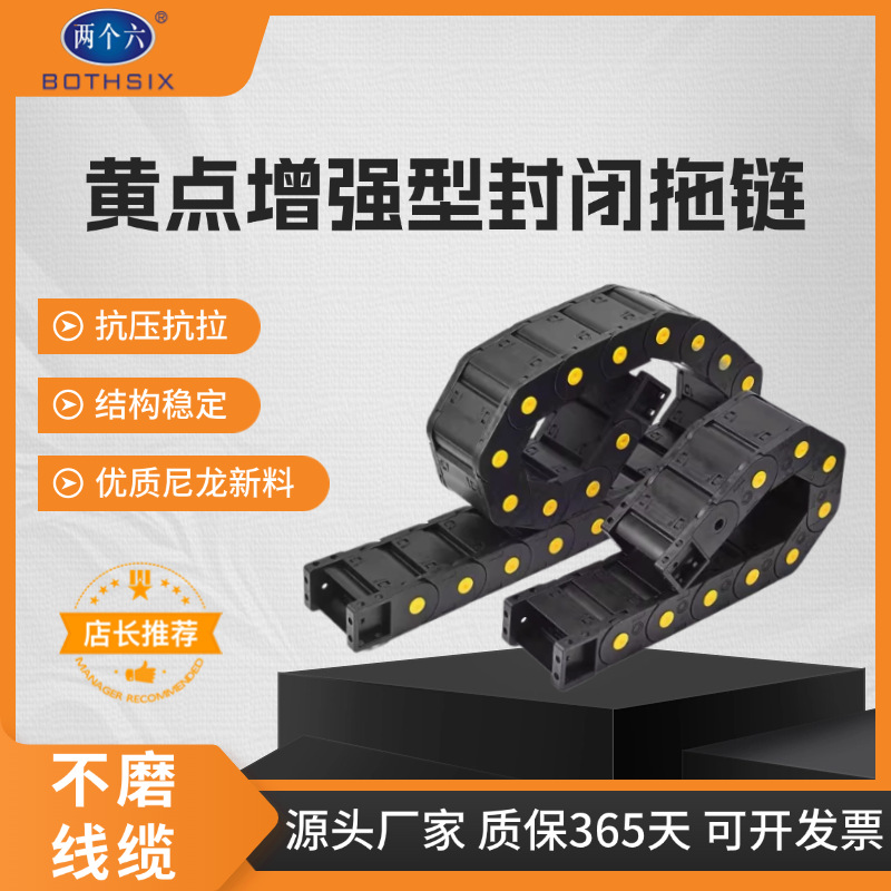俩個陆 拖链 雕刻机机床裁切机耐磨桥式黄点全封尼龙塑料拖链坦克链电缆保护链