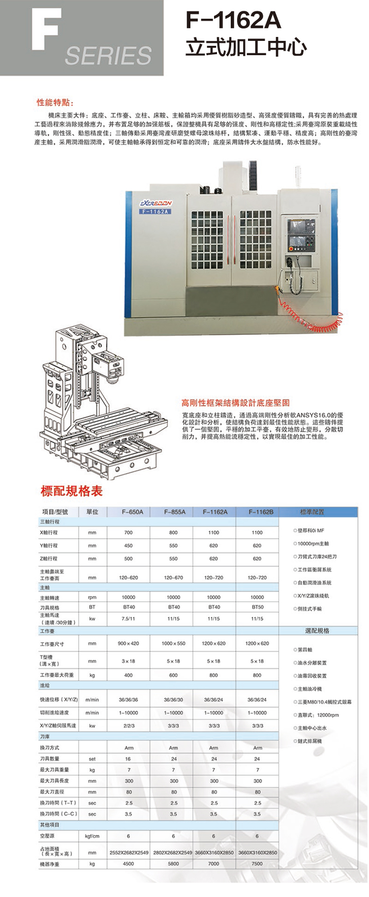 艾格索 艾格索立式加工中心 F-1162A