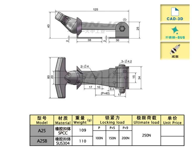 可用于车辆引擎盖/机罩/振动机械,优质橡胶体扣身具有减振功能,可保持对连接体的弹性预压