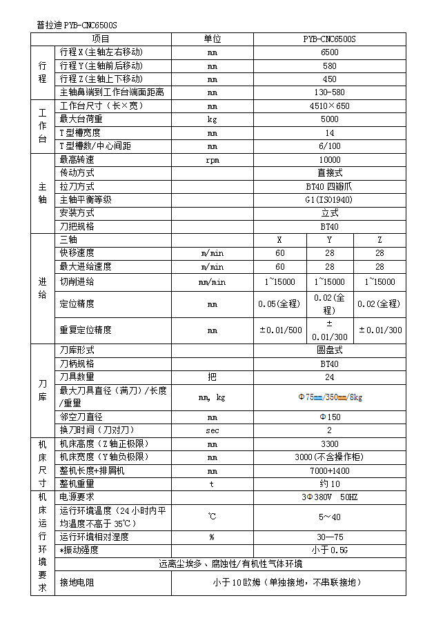 型号PYB-CNC6500S