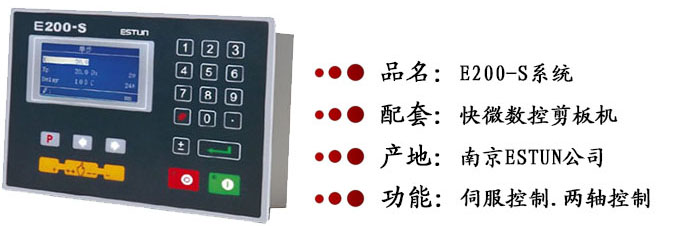 E200数控系统是在E20控制功能的基础上,采用高清晰LCD显示,应用最新电子技术,专业应用于扭轴同步剪板机后挡料和死挡块的控制。单键操作的功能切换,客户友好的操作界面,更多屏幕信息使客户在编程,参数设定,自动加工操作更简单,更快捷。专利的驱动控制技术,采用CAN总线与本公司的EDC系列交流伺服连接。其性能得到最大的发挥。中英文选择,公英制转换,满足不同国度的客户需求。已通过严格的EMC检验,并通过TUV公司的CE论证